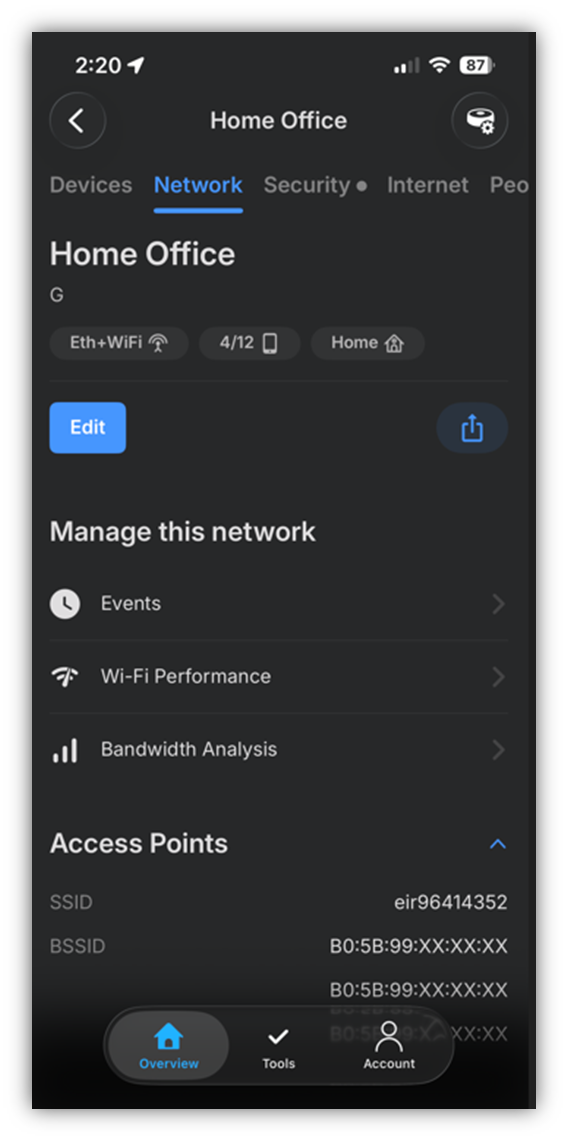 To change the network name on Fing Web App, select Internet from the dashboard and then select the Edit from the top right menu bar. The Edit Network Details window is displayed.