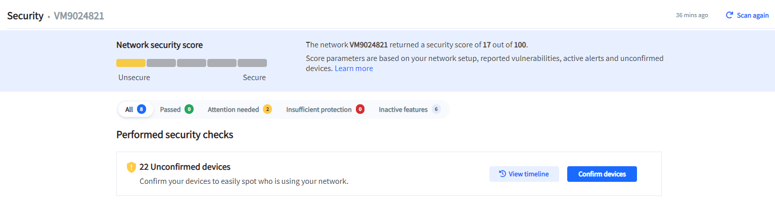 Make sure the Context for your network is set to Home or Office. If prompted on the Fing Dashboard, select Assign Context, and click the Home or Office button to confirm that your network is private.