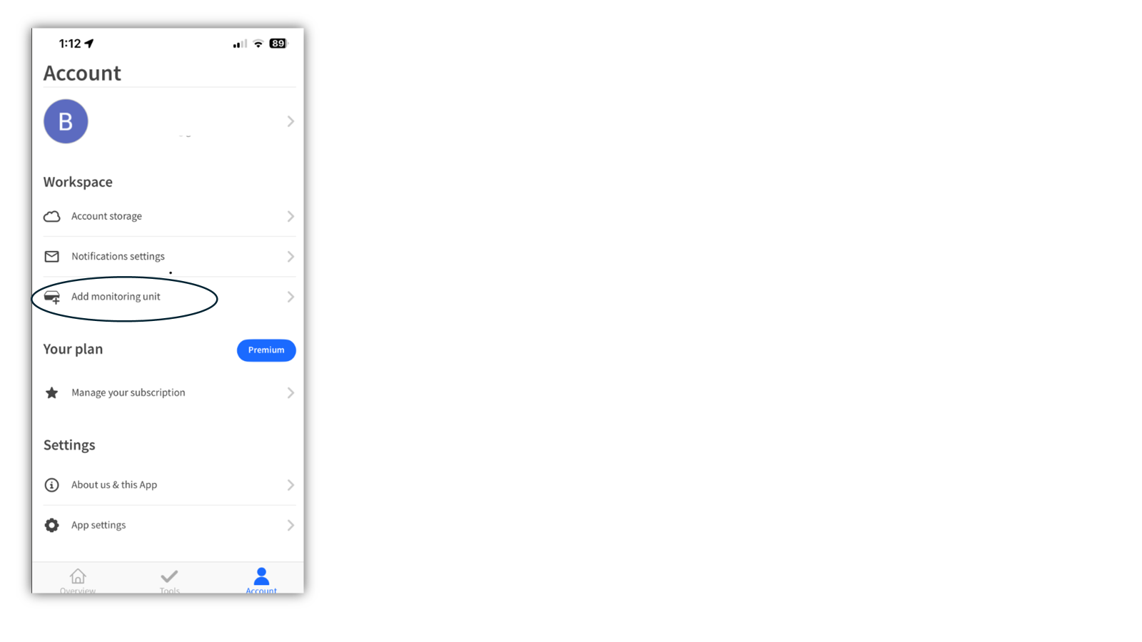 - En Workspace, selecciona Agregar unidad de monitoreo.